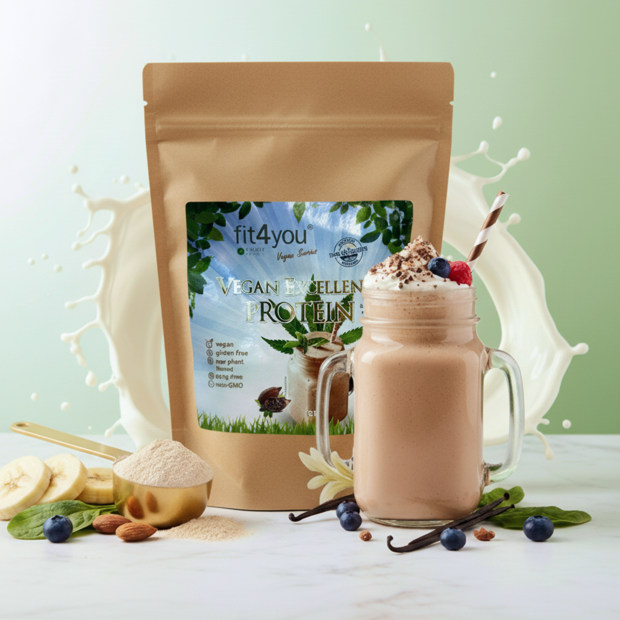 Fit4you Vegan Excellence je rostlinný protein obsahující 72 % rýžového, hrachového a konopného proteinu nejvyšší kvality bez tepelného zpracování. Slazený je speciálním přírodním sladidlem Stevion, které neovlivňuje hladinu cukru v krvi a je vhodný i pro diabetiky a aktivní lidi trpící různými intolerancemi a trávicími potížemi. Přidány jsou trávicí enzymy, vitamín D3 a chuť pravého kakaa.